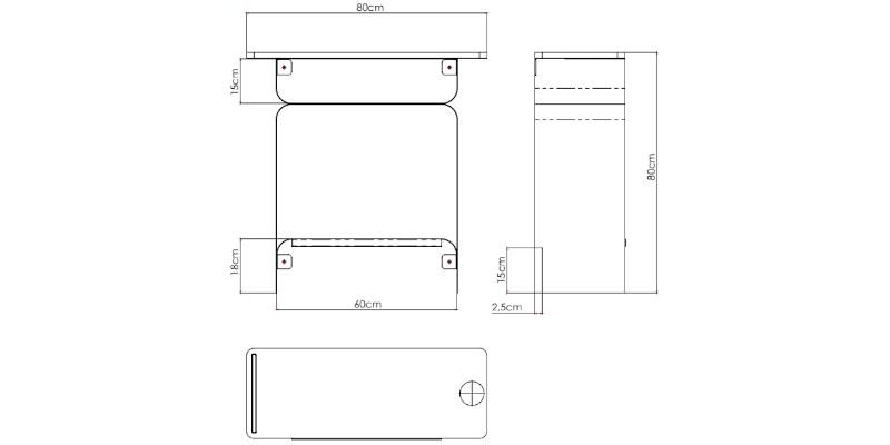 Hairdressing furniture with black curved metal structure and solid wood top equipped with a hairdryer support