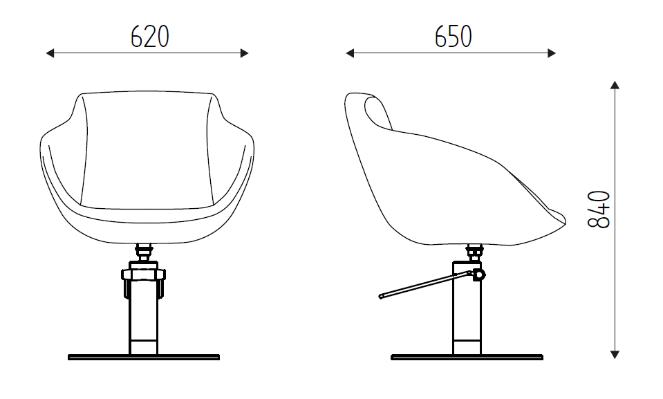 Fauteuil de coupe aux formes arrondies avec pompe hydraulique blocable.